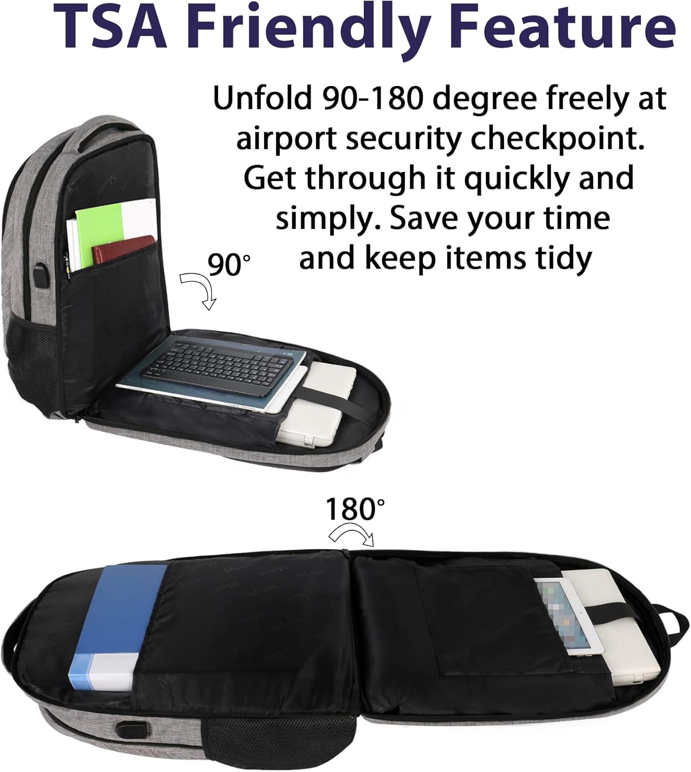 MATEIN Travel Laptop Backpack, 17 Inch Business Flight Approved Carry on Backpack, TSA Large Computer Bag for Men Women with USB Port and Trolley Sleeve, College School Tactical Book Bag, Grey
